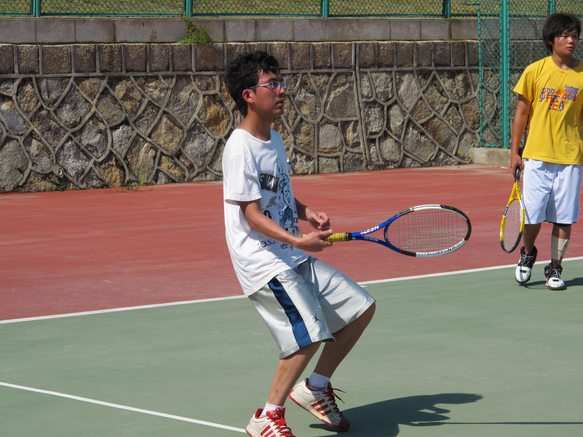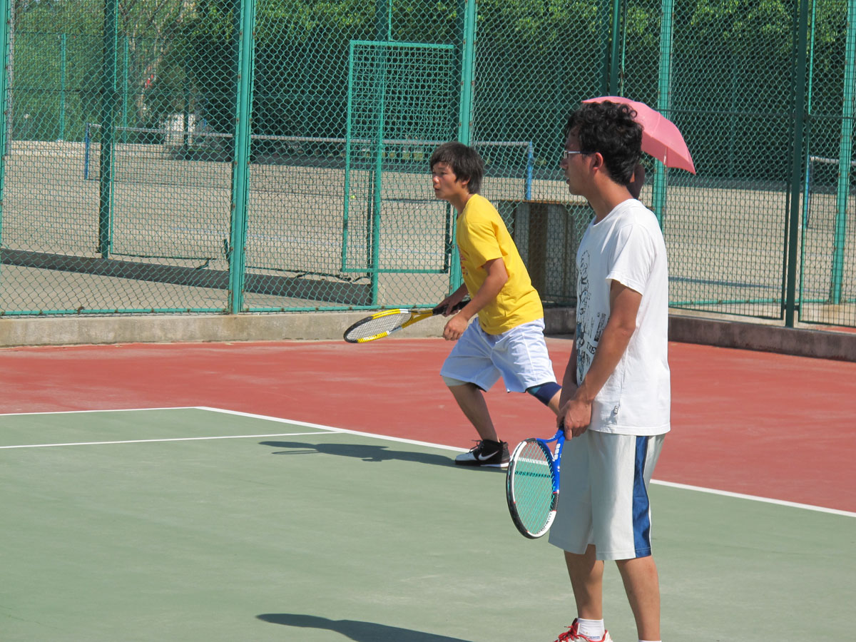 强烈的阳光照得整个球场都泛着微微的热浪,选手们一个个汗流浃背,目光专注。在首先进行的男双比赛中,10级选手蔡斯昆和许金良配合默契,蔡斯昆运用自己灵活的跑动与有力的正反手不断得分,同时许金良在网前也不断高挑扣杀,给对方造成很大压力,两人顺利拿下第一局,但随后对手猛烈反击,表现越来越勇猛,最终我院男双以1:6不敌物理与机电学院。