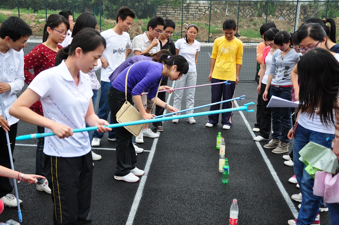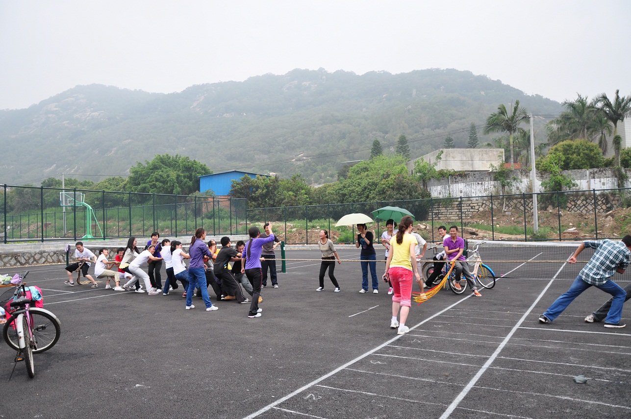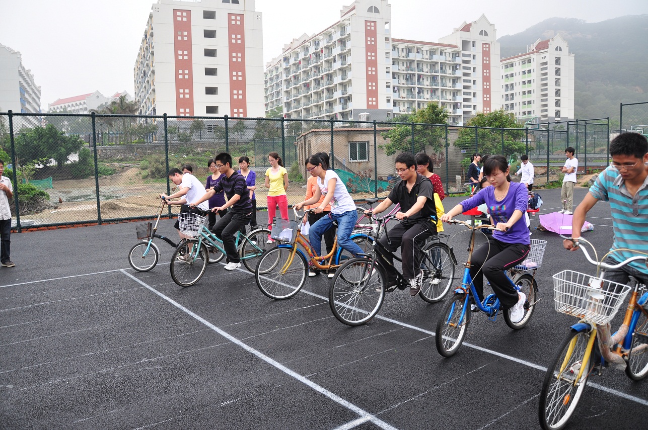 在小雨中,趣味运动会拉开了帷幕。研会成员为此次活动设计了许多有趣的项目,比如三人毽球比赛,自行车慢骑,钓鱼,丢沙包,拔河等。同学们被分成六只队伍,分别进行以上项目的比赛,每个项目取得一定的名次会有相应的积分,最后积分最多的队伍为最终冠军。比赛进行得热火朝天,淅淅沥沥的小雨浇不灭同学们的热情。比赛过程中高潮迭起,欢呼声叫好声不绝于耳。胜负已不重要,同学在欢笑中感受着快乐,在汗水中体会着青春。