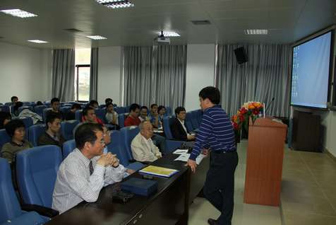 莫毅明教授就有界对称域上的一些问题进行了深刻的讲解,他深入浅出地讲述了有界对称域是代数,Riemann几何,代数几何和多复变数交叉研究的领域。从问题的来源(Clozel-Ullmo 2003)讲到有界对称域上关于Bergman体积形式的保持测度的全纯映射的牙,这种映射的牙必须是全测地的,同时也阐述了他在这个领域的一些最新研究成果。2007年,他的“关于对称与齐次空间的复几何”获国家自然科学奖二等奖。莫毅明教授的精彩演讲赢得了阵阵掌声。