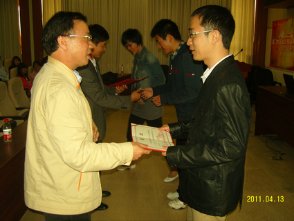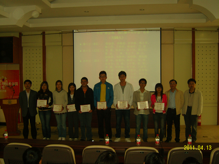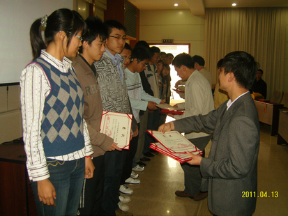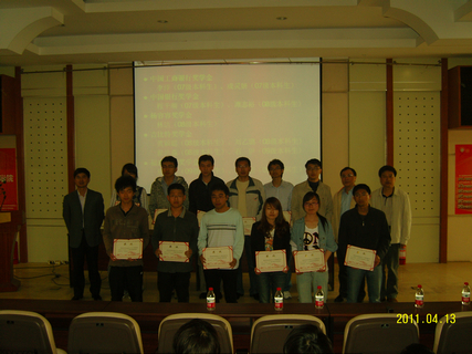 4月13日下午3点,数学科学学院2011年校庆期间校级奖学金、院级奖学金表彰大会在海韵教学楼504隆重举行。党委书记张明智,副院长邱春晖教授,谭绍滨教授,团委副书记杨机像,辅导员陈向柳出席了本次表彰大会07,08级本科生及研究生也一同参加了这次大会。大会由杨机像老师主持。