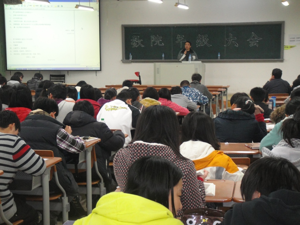 2010年12月18日晚7:30,数学科学学院于厦门大学漳州校区4#411召开09、10级年级大会,会议由辅导员杨机像老师主持,09、10级全体同学与会。