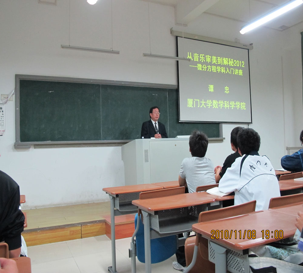 2010年11月8日晚7:00,厦门大学数学科学学院谭忠教授应邀在4号楼212教室开展我院本学期第一场讲座。