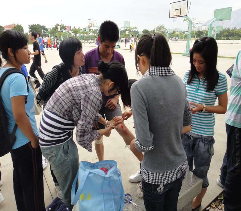 比赛过程中,场上同学奋力拼搏,场下同学加油助威。数院俨然亲如一家,处处传递着“友谊第一,比赛第二”的精神。比赛中途,团委副书记杨机像老师也来到操场观看比赛,为同学们加油喝彩。医学院的同学更是自愿组织医疗救护队帮助护理数院比赛过程中负伤的同学,使得本次比赛更加温馨和睦。