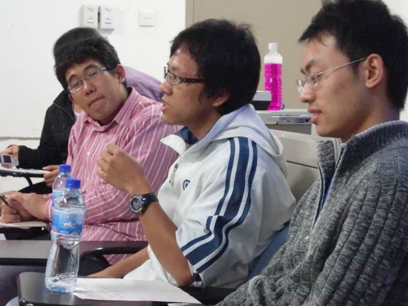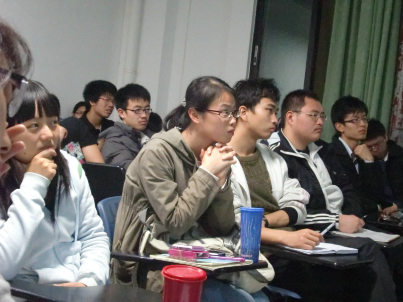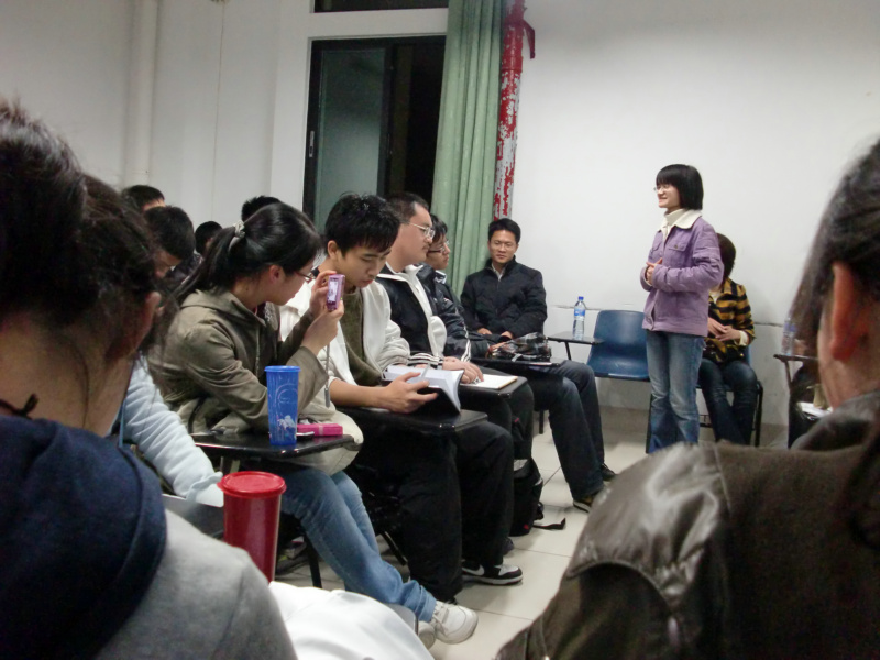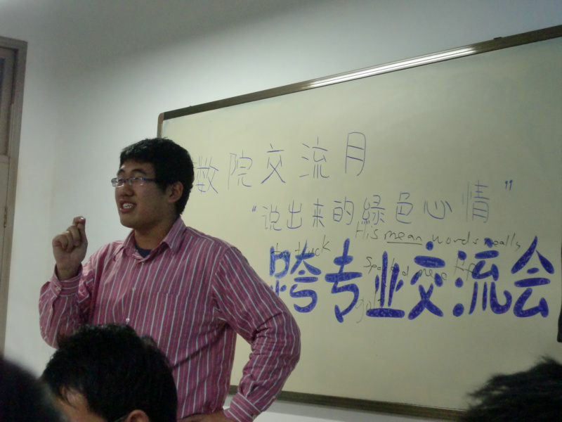 与会的嘉宾有数学科学学院辅导员陈向柳老师,经济学院学术部的董庆同学(金融系),校会主席团、经济学院金融系的刘洋同学,计算机系学术部曾获国家奖学金的叶挺同学,管理学院会计系的辛程同学以及分别由物理机电系、生命科学院转到数学学院的翟雪瑞和盖冰欣同学,另外,部分数学学院大一大二同学也都积极到会。