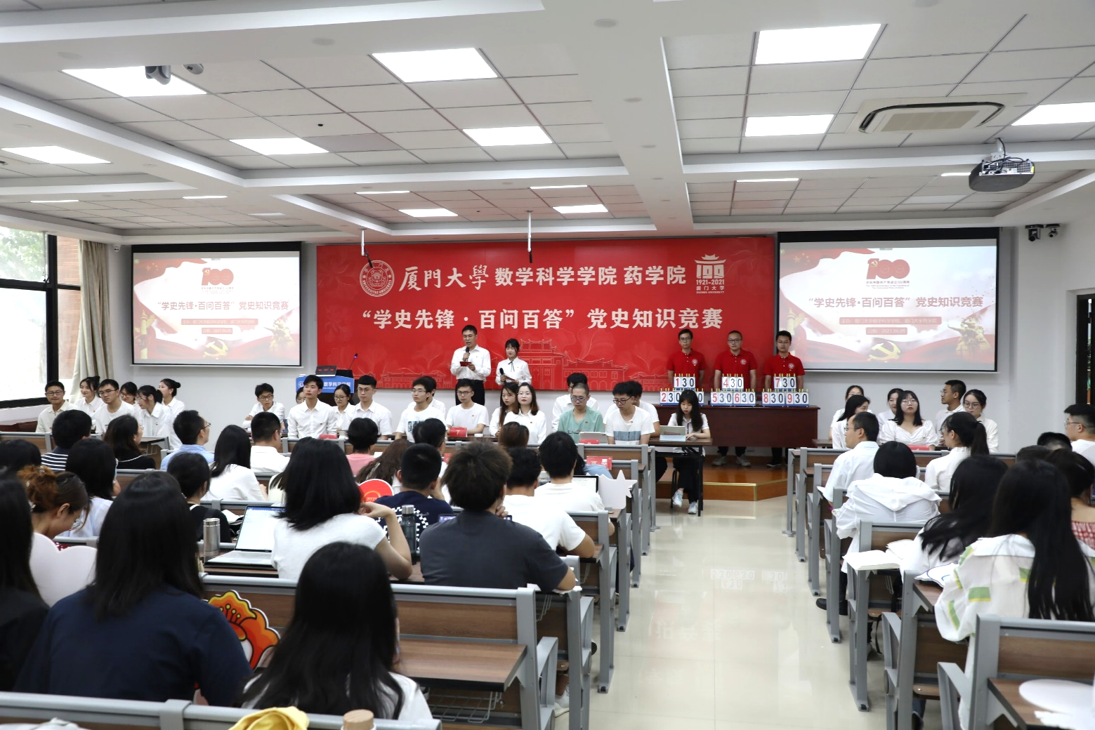 数学科学学院与药学院共九支代表队参与竞赛。此次竞赛共分两轮,第一轮竞赛为必答题与抢答题,第二轮竞赛为风险题。比赛题目涵盖了党史、新中国史、改革开放史、社会主义发展史以及党的基本理论等内容,同时将厦大百年校史知识穿插其中,既增加了比赛的趣味性,又在潜移默化中提升了育人成效。