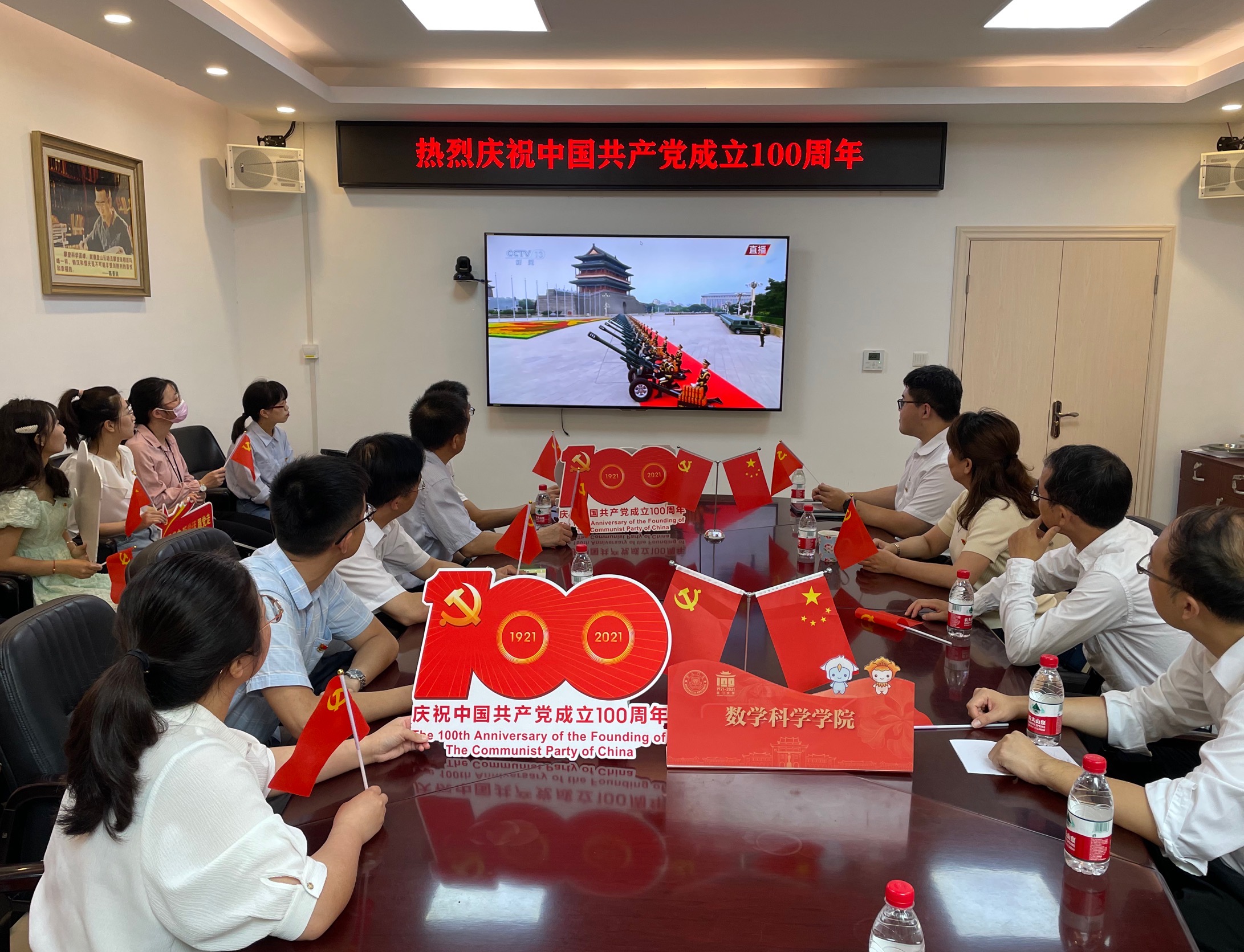 7月1日上午8时,庆祝中国共产党成立100周年大会在北京天安门广场隆重举行。中共中央总书记、国家主席、中央军委主席习近平发表重要讲话。数学科学学院党委组织师生通过电视、网络、手机直播等多种形式收听收看大会盛况,学习领会习近平总书记在庆祝大会上的重要讲话精神,共同回顾中国共产党同人民风雨同舟、生死与共,从胜利走向胜利的伟大征程,共同感悟中国共产党的百年辉煌成就和宝贵经验,激励和动员全院师生更加紧密地团结在以习近平同志为核心的党中央周围,在新百年新征程中奋勇前进。大家纷纷表示,要自觉弘扬伟大建党精神,砥砺初心,践行使命,不负时代,不负人民,为全面建成社会主义现代化强国、实现中华民族伟大复兴的中国梦贡献厦大数学人的力量。