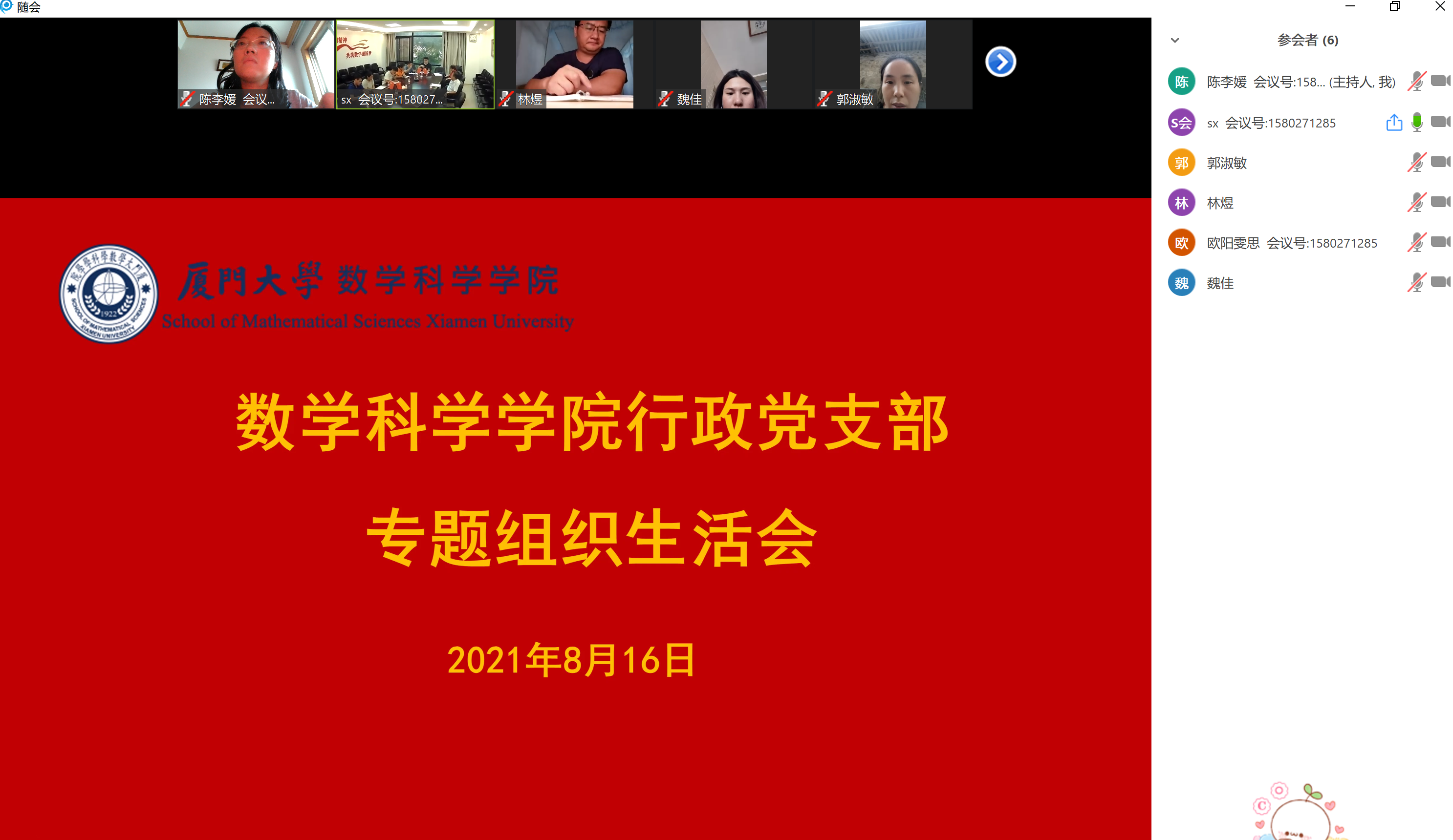 吴纲民带领大家深入学习了《中国共产党普通高等学校基层组织工作条例》,支部副书记陈李媛代表支部委员会报告了近半年来的工作情况和党史学习教育开展情况,通报了支委会检视问题情况。