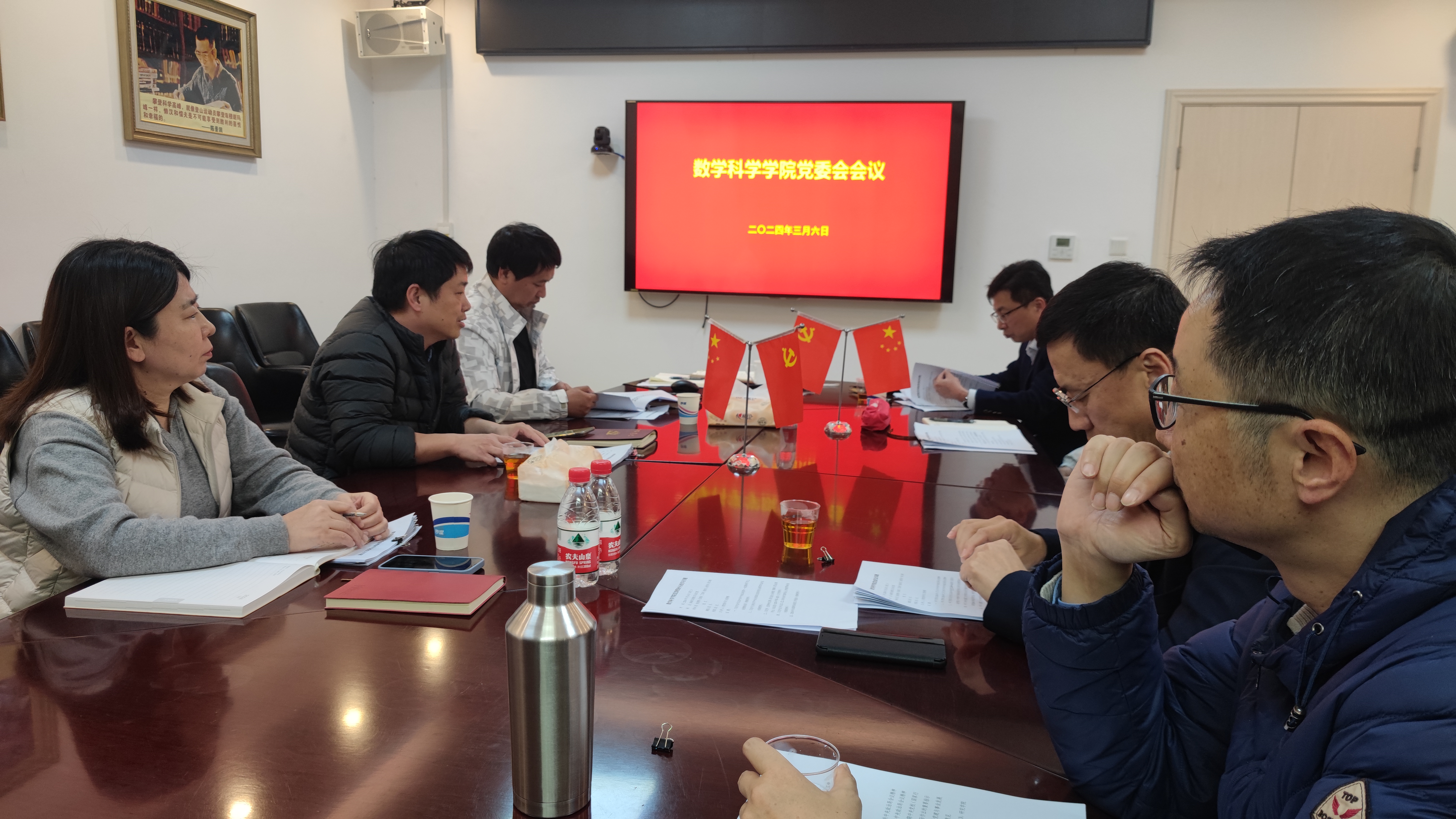 与会人员集体学习领会2024年1月31日中共中央政治局会议精神、2024年2月29日中共中央政治局会议精神和习近平总书记在2024年春季学期中央党校(国家行政学院)中青年干部培训班开班之际作出的重要指示,并结合学院实际进行深入研讨,在此基础上研究制定2024年学院党委工作计划要点。会议提出,2024年是中华人民共和国成立75周年,是全面贯彻落实党的二十大精神、承上启下实施“十四五”规划的关键一年,更是数学学科奋进新百年征程的开局之年,学院要深入贯彻党的二十大精神和学校第十二次党代会精神,持续推进以习近平新时代中国特色社会主义思想铸魂育人,坚持国家战略需求导向,充分发挥基础学科科研优势以及作为培养拔尖创新人才的“关键一环”的责任定位,在学校建设国家高等教育东南中心的征程中彰显数学担当。